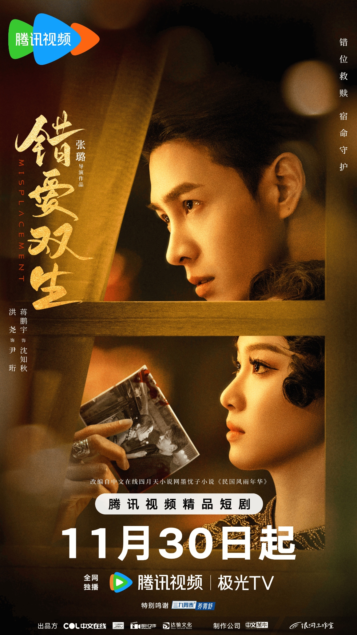 今天,由中文在线出品,中文万年承制,改编自中文在线旗下四月天小说网墨忧子小说《民国风雨年华》的25集精品短剧《错爱双生》在腾讯视频重磅上线。该剧由张璐执导,林若君编剧,洪尧、蒋鹏宇、陆思恒、虞朗主演,讲述了民国时期一对姐妹花错嫁,一世爱恨交织的故事。